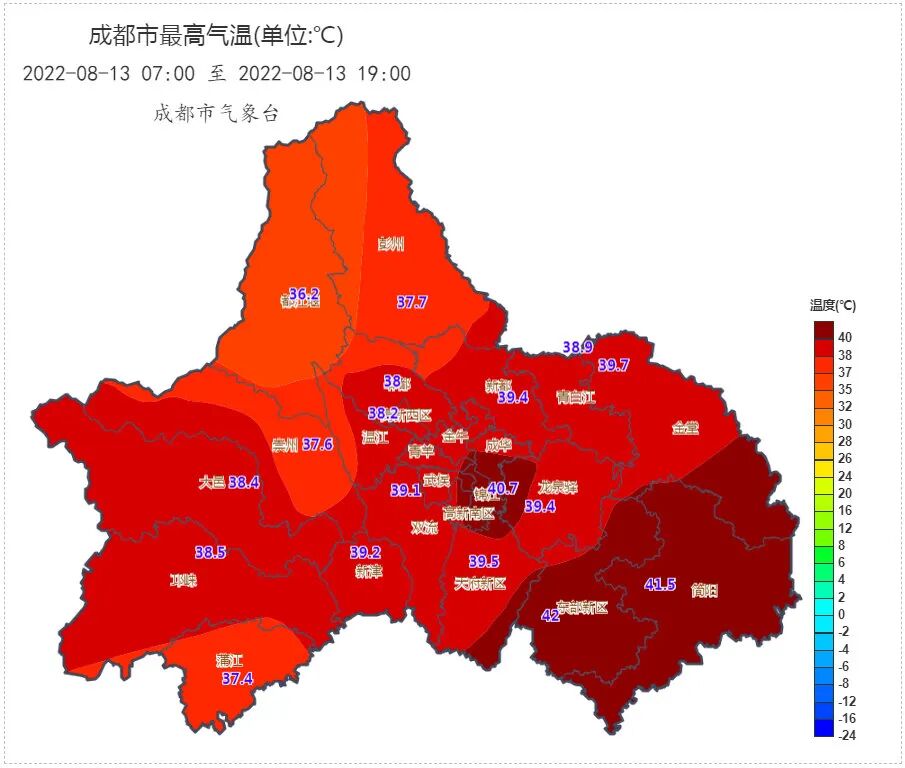 预计8月14日白天,新疆吐鲁番盆地和南疆盆地、陕西中南部、山西南部、河北南部、山东南部、河南、安徽、江苏、上海、湖北、湖南、江西、浙江、福建、四川中东部、重庆、贵州东部、广西北部、广东北部等地最高气温将有35~39℃,其中,陕西南部、河南西南部、安徽南部、江苏南部、上海、湖北东南部和西北部、浙江大部、四川东部、重庆中西部以及新疆吐鲁番盆地等地的部分地区最高气温可达40℃以上。昨日成都最高气温除都江堰外,其它地方均超过37℃,最大值出现在东部新区42.0℃。昨日夜间成都市局部地方有分散阵雨,个别地方还有大雨或暴雨;今日07时全市均温26.9℃。预计成都今天白天多云间晴,有分散阵雨或雷雨,个别地方大雨到暴雨,雷雨时伴有短时阵性大风,气温26~41℃。今年7月下旬以来,我国多地最高气温值、高温日数破纪录。据@四川气象8月13日消息,近期三天,盆地大部地方最高气温可达36℃-39℃,中东部的部分地方将超过40℃;甘孜州西部、南部和攀西地区多阵性降水。截至8月14日,中央气象台已连续25天发布高温预警。中央气象台首席预报员陈涛介绍,数据显示,7月以来,浙江全省35℃以上高温日数平均有31天,38℃以上平均16天,均为历史同期最多;重庆全市平均高温日数达29.3 天,为1951年以来同期第2多;上海今年35℃以上高温日数共40天,40℃以上高温日数为6天。国家气候中心首席预报员陈丽娟表示,目前区域性高温过程还没有超过2013年,但未来两周南方高温天气仍将持续。根据预测,此次区域性高温过程持续时间将超过2013年的62天,成为1961年以来持续时间最长的一次高温过程,今年高温天气综合强度可能将为1961年有完整记录以来最强。据陈涛介绍,中央气象台发布高温红色预警的标准为:过去48小时,4个及以上省份的部分地区连续出现最高气温达40℃及以上,且预计上述地区未来仍将持续。“从12日的预报过程来讲,首先根据监测,四川、重庆、浙江、江苏以及湖北等地的部分地区已经出现了持续性的40℃以上高温天气。同时通过对大气环流的分析,预计未来四川盆地到长江中下游这一带地区,仍然会有范围较大、强度较强的高温天气。”陈涛说,初步预计未来4到5天高温天气仍将满足红色预警的发布标准,中央气象台将持续跟踪天气实况和预报发展,及时进行滚动更新预报预警。陈丽娟说,夏季出现高温热浪事件,从气候态角度来讲是正常的。但今年夏季高温热浪事件持续的时间、强度和影响范围,都已经达到非常强的水平。根据国家气候中心监测和后期预测,今年6月以来我国出现的罕见高温天气,有可能达到1961年有完整气象记录以来最强的一次高温事件。陈丽娟分析,从影响气温最直观的因素——大气环流特征来看,今年西太平洋副热带高压异常偏强且西伸,同时其南、北边界均外扩,范围非常大。“类似今年这样的高温酷暑,在以后的夏季出现频率可能较高。”陈丽娟说,气候变化背景下,高温热浪事件将成为一个常态。此外,今年高温天气开始早、结束晚、持续时间长,这种特征在未来可能也会越来越显著。不仅是我国高温频发,入夏以来,北半球多地出现高温热浪事件,法国、西班牙、英国、美国、日本等国多个城市刷新高温纪录。联合国政府间气候变化专门委员会(IPCC)第六次评估报告指出,最近50年全球变暖正以过去2000年以来前所未有的速度发生,气候系统不稳定性加剧。进入21世纪以来,北半球夏季高温热浪事件日渐频繁。