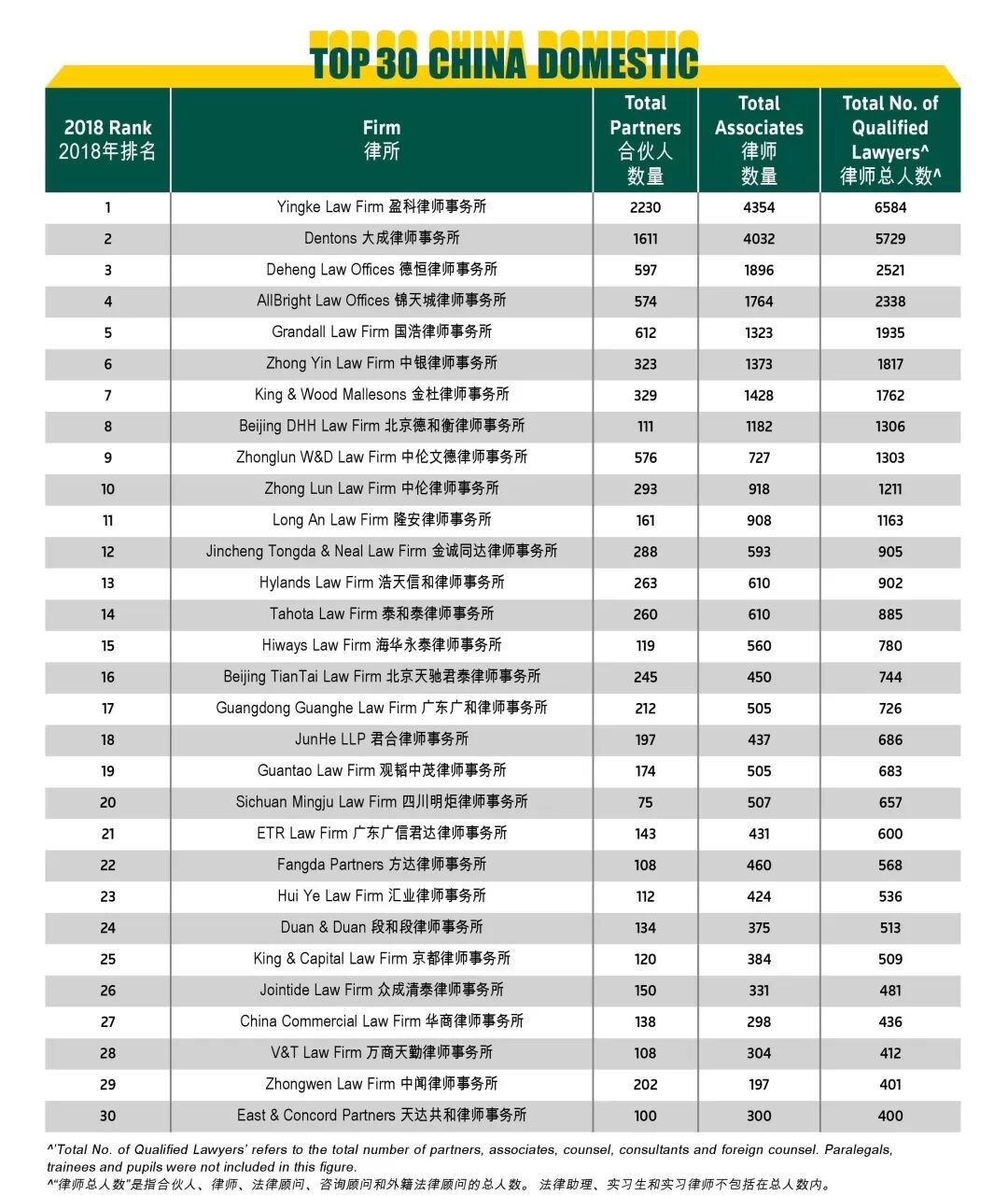 • 在两家律所的律师总人数相同的情况下,合伙人数量较多的一家排名靠前。