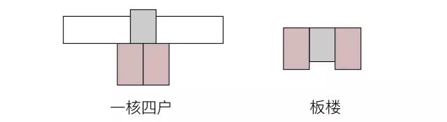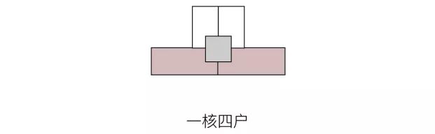 常见于:一核三到四户的边套或高层薄板。