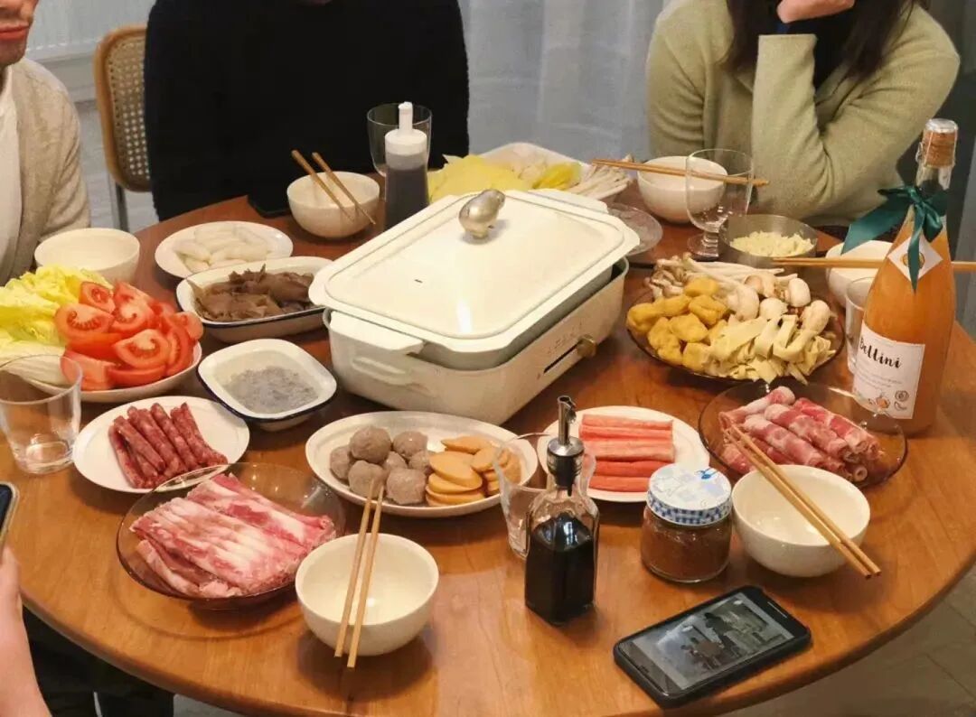 我们中国人是共餐制,亲朋好友聚餐,一定要用圆桌,夹菜方便,围坐聊天也都能照应到。