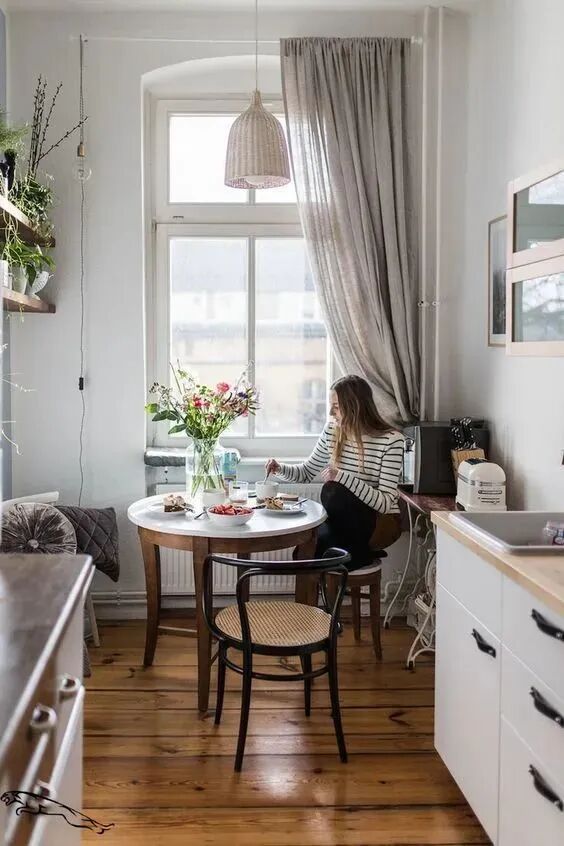 如果你家是小户型,餐桌只能见缝插针,而且可能位于夹角、过道等位置,那么可以肯定的是: