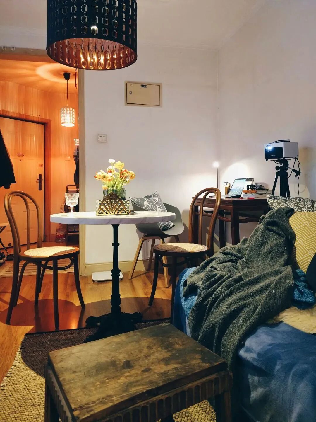 两口人住,简单的 60cm 小桌,就够用了;