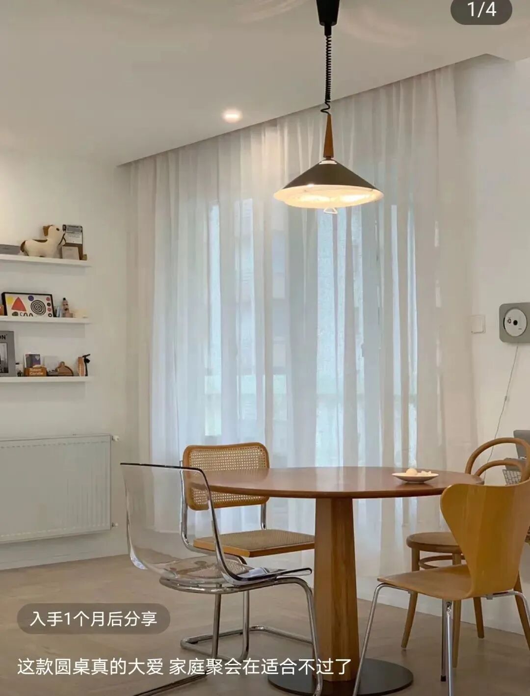 但如果用圆桌,一只中心吊灯就解决问题,同时还有围合感。
