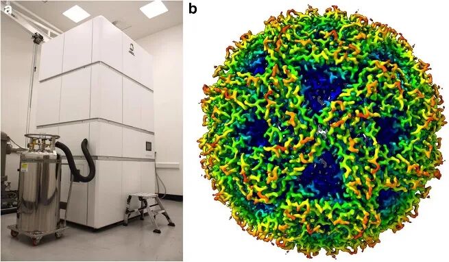 ▲冷冻电镜及其图像
