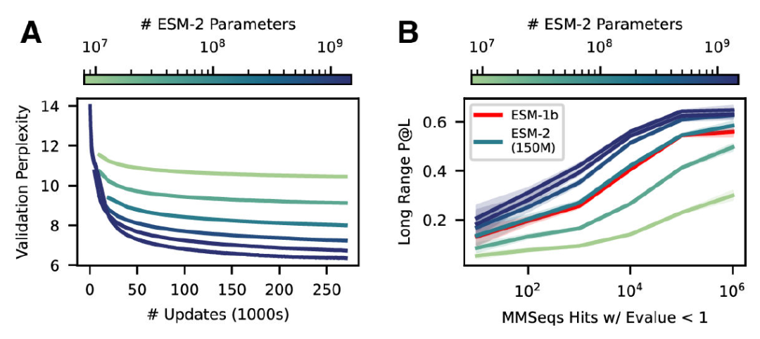 ▲ESM-2模型随着参数量升高精度升高