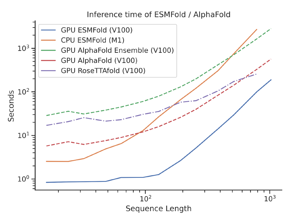 ▲ESMFold模型具有比AlphaFold2更高的速度