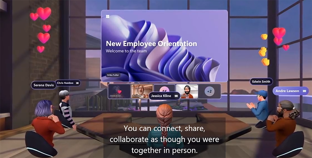 办公场景是此Meta Connect大会上重点介绍的内容之一。而扎克伯格也请到了微软的CEO萨提亚·纳德拉(Satya Nadella)共同讲述他们对于元宇宙办公的构思。