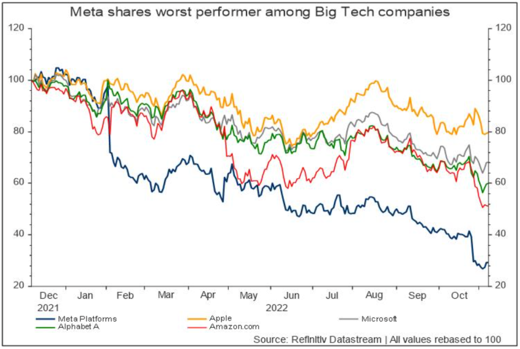 ▲Meta在美股五大科技巨头中股市表现最差(图源:路透社)