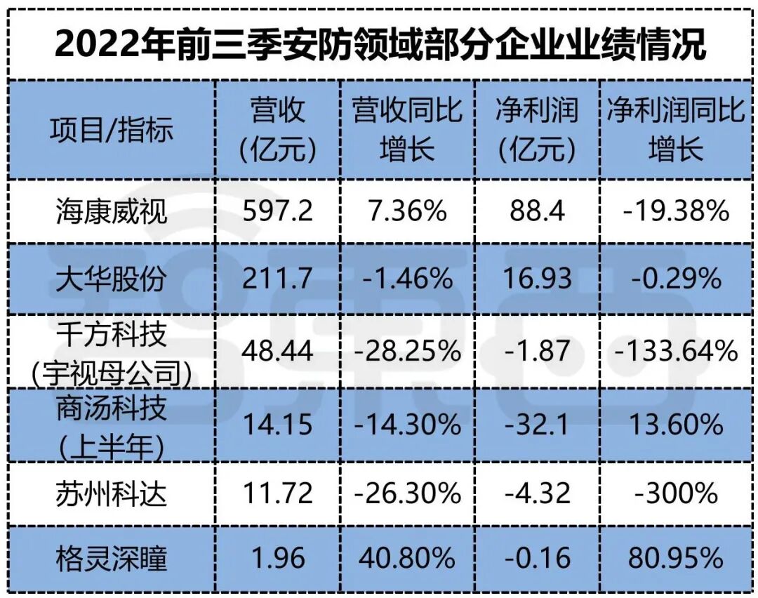 大华出售Lorex只是行业困境的一个缩影。实际上,纵观当下智能物联行业,受贸易制裁、全球经济下行、疫情反弹等因素叠加影响,智能安防行业的众多玩家都在面临“寒冬”。海康、大华、宇视等龙头第三季度盈利猛跌,股价跌超一半。如果说2020年雪亮工程、平安城市等国家项目红利锐减,使安防龙头告别了超高速增长时代,那么今年Q3的新寒潮则使得安防企业几乎掉进了冰窟窿。![]()