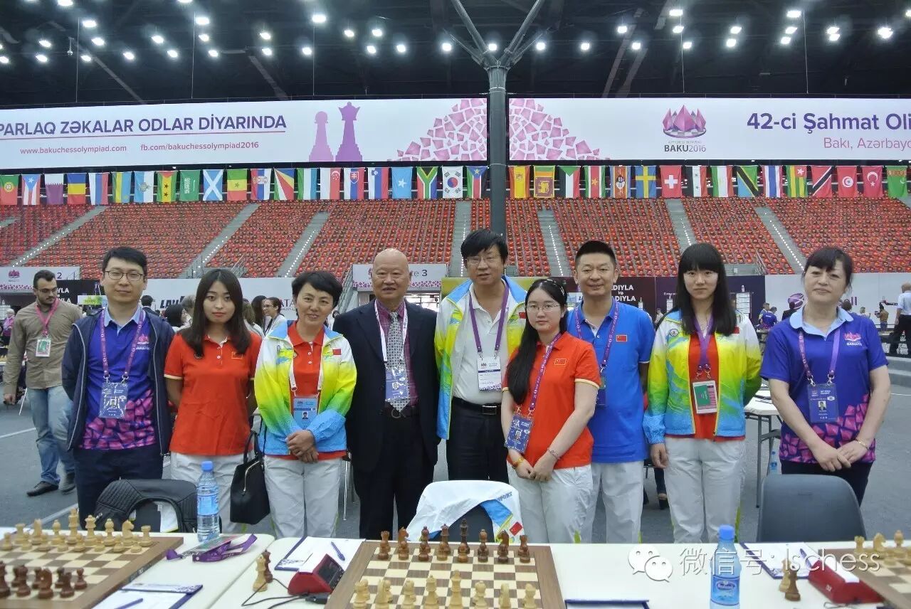 执法奥赛的三名中国裁判肖冠军(左四)、徐雅萍(右一)、朱家琪与中国队合影