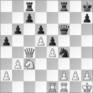 图3 1...Nxg2 2.Kxg2 Qg4+ 3.Kh1 Qf3+ 4.Kg1 Nh4 5.Rfc1 Qg2#