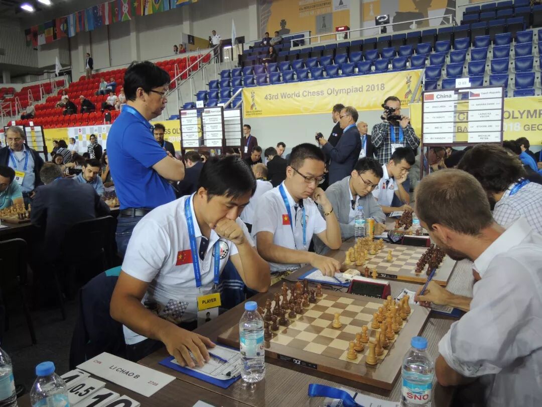 两盘先手棋中,二台沈阳面对穆克尔奇扬,在中局战斗中出现了失误,失子落败。这也是中国女队本届奥赛输掉的第一盘棋。四台雷挺婕在一场拉锯战中力克库尔索娃。