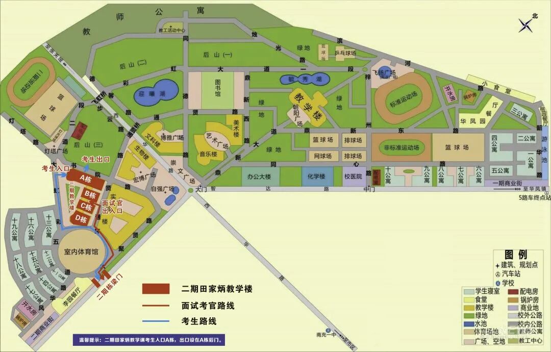 2.考生一律从华凤校区西山片区栋梁门(师大路一段)进入,请根据考试引导标识,自觉遵守考试规定。