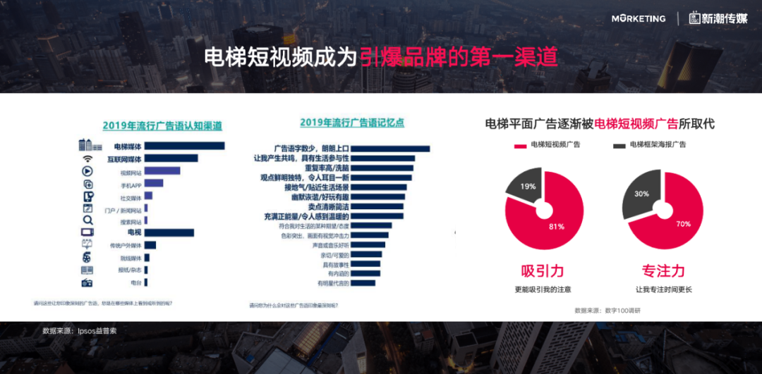 从益普索发表的《2019年中国国内流行广告语受众调研报告》来看,电梯媒体已经超越互联网,成为流行广告语的认知新渠道。