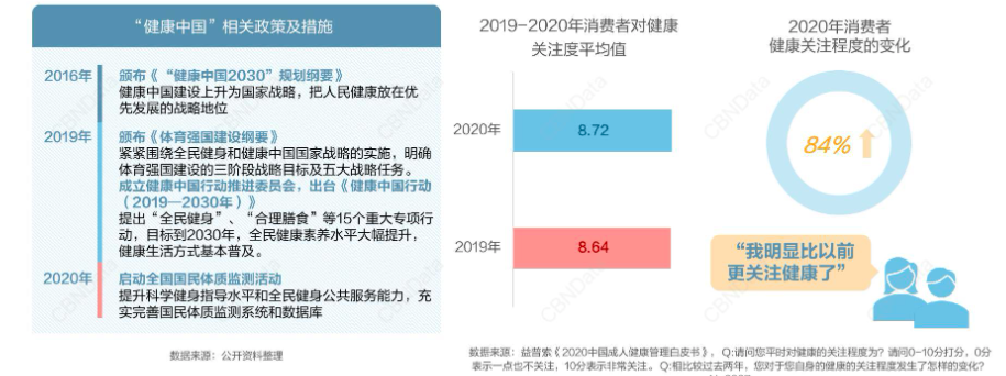 当下的中国市场,消费者自我健康意识在不断提纲,不仅有“健康中国”战略的推动,也包括今年“免疫力是最好的抗疫防线”的影响,根据CBNData联合天猫美食发布的《2020代餐轻食消费洞察报告》显示,2020年,84%的消费者“明显比以前更关注健康”。