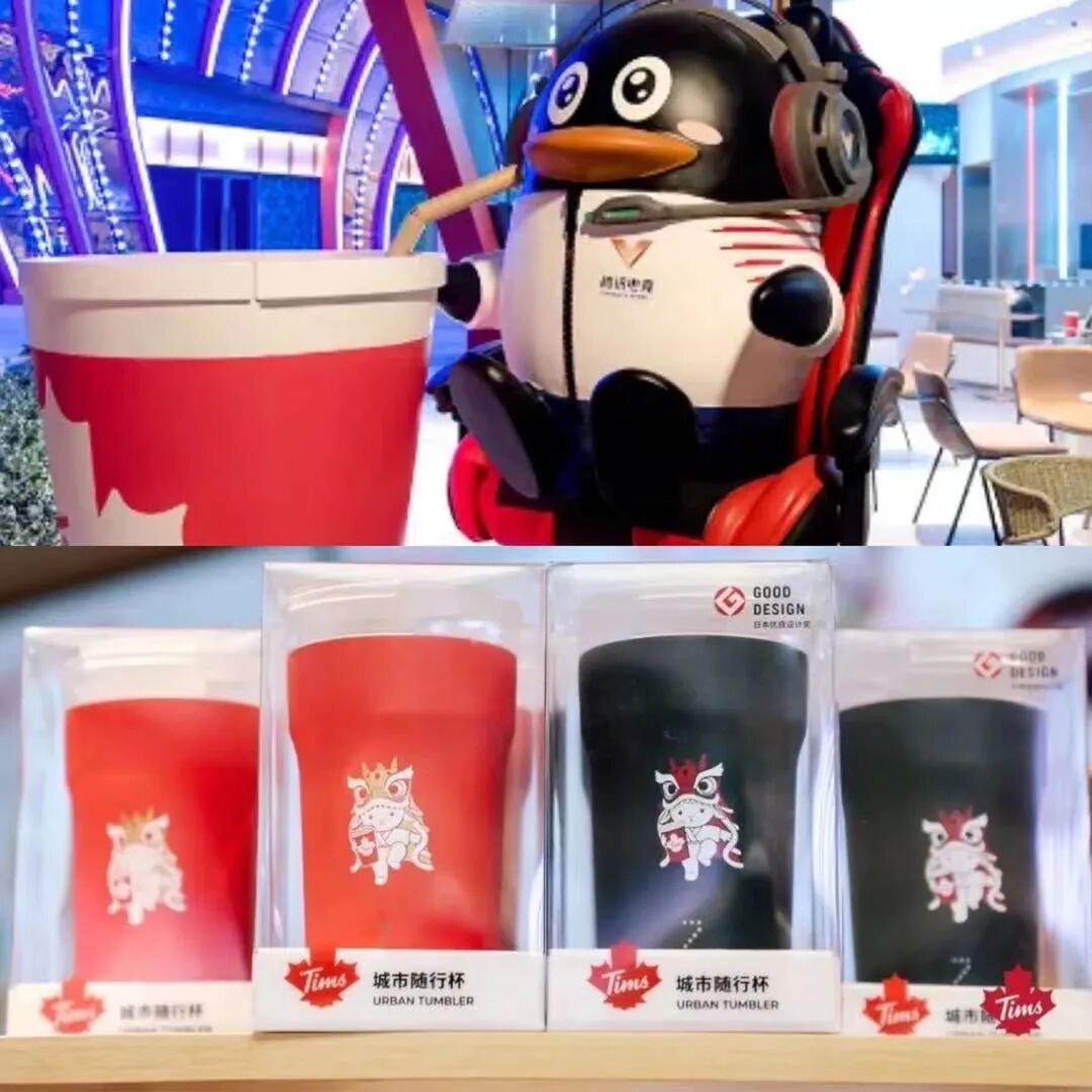 上:电竞主题店 下:Tims广州门店出售的城市随行杯