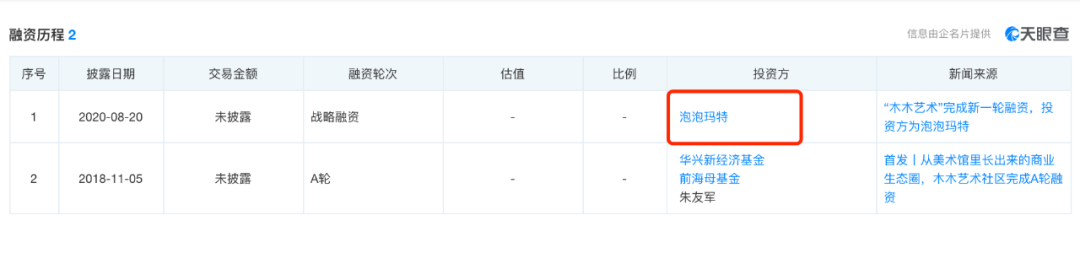 天眼查显示,泡泡玛特于2020年8月独家投资「M WOODS 木木美术馆」。「M WOODS美术馆」致力于在中国打造一个以“全球性”为基础的民营非营利艺术机构,馆内拥有包括装置、绘画、雕塑、影像等在内的艺术品,涵盖当代艺术家以及15-18世纪欧洲绘画大师作品和19-20世纪现代主义艺术作品。