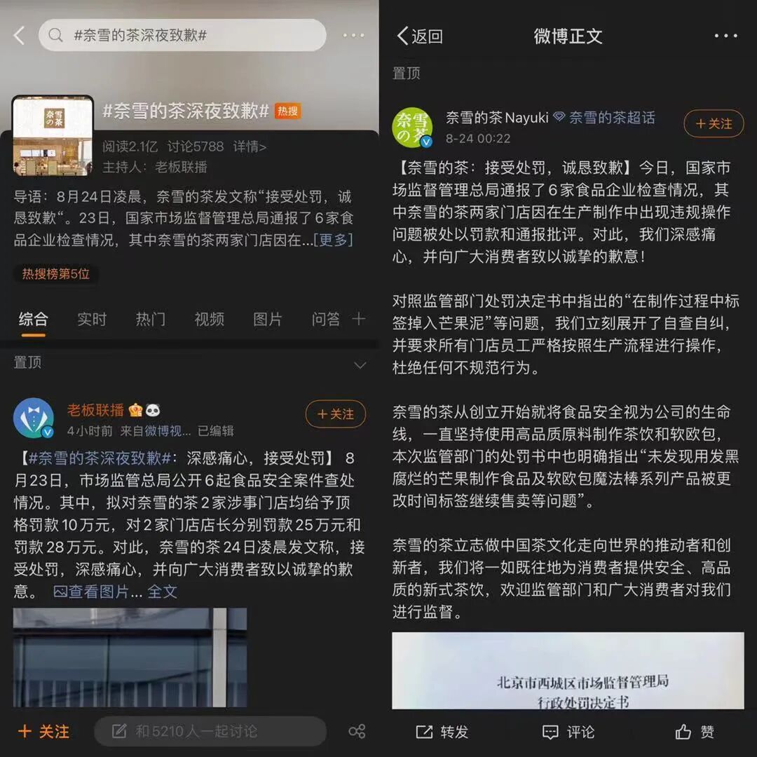 今年6月30日,“全球新茶饮第一股”奈雪正式在港交所挂牌上市,上市首日破发后屡创新低。事实上,其随后的日子也过得并不安稳,先后两次因门店卫生问题公开道歉,而最近一次就发生在8月24日凌晨。