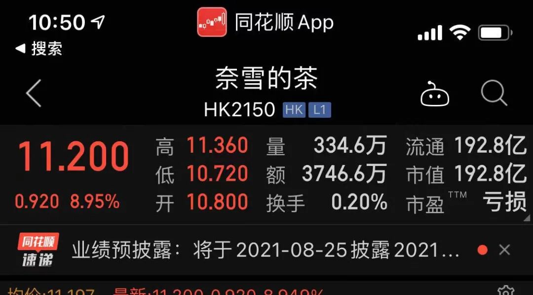 截止发稿前,奈雪股价为11.2港元。