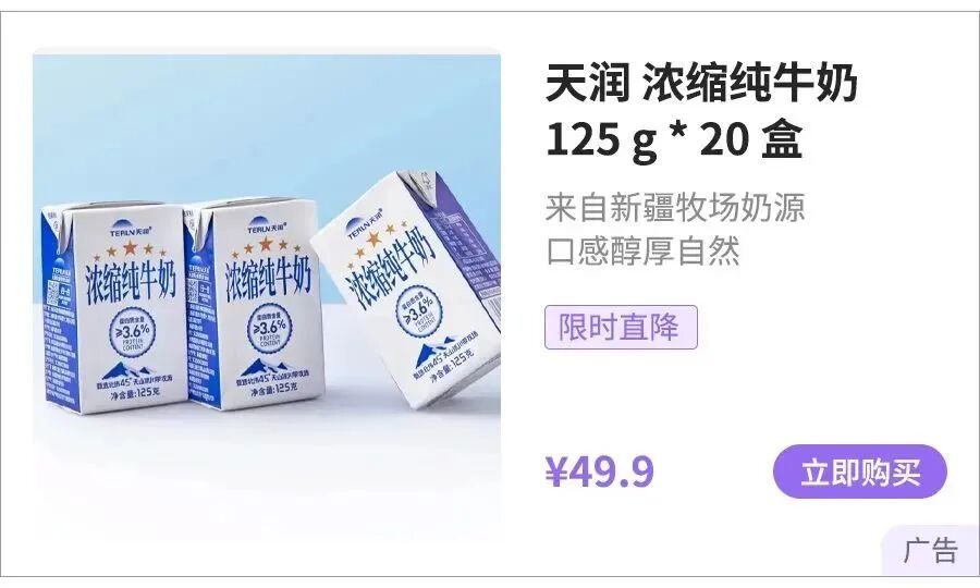 这次开团,天润纯牛奶 1 箱( 20 盒)只要 49.9 元。而且现在一次抱走两箱,还能再便宜 9 元,单箱只要 45.4 元!