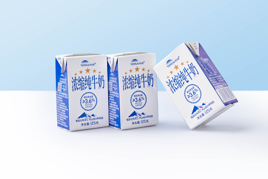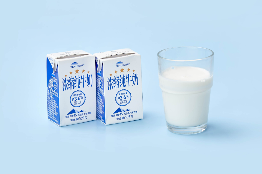 咱们找来的这款天润纯牛奶,就产自北纬 45° 的新疆天山脚下的牧场。