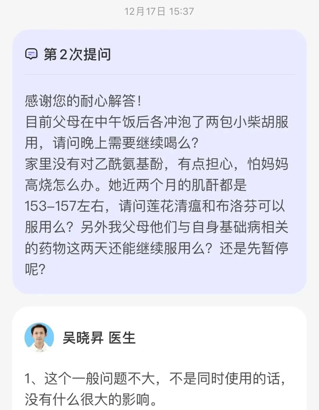 但是看完之后,可能还是会有一些特别具体的情况,说明书无法全面覆盖,或是细致地说明,这时候直接掏出手机问医生,是获取针对性解答的更高效办法。