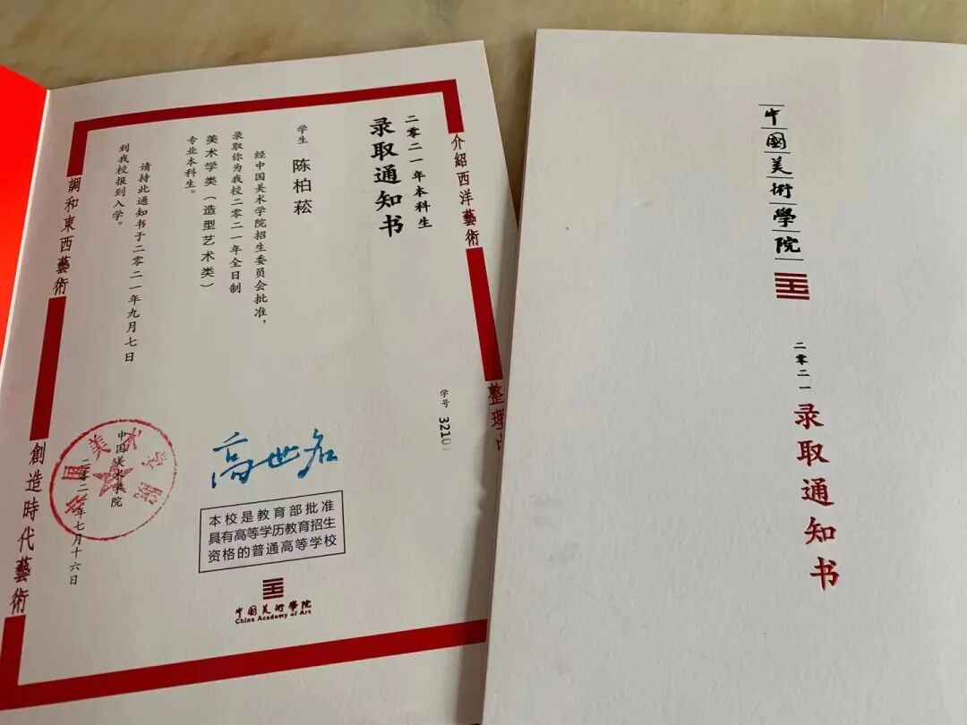 部分美术生作品及录取通知书