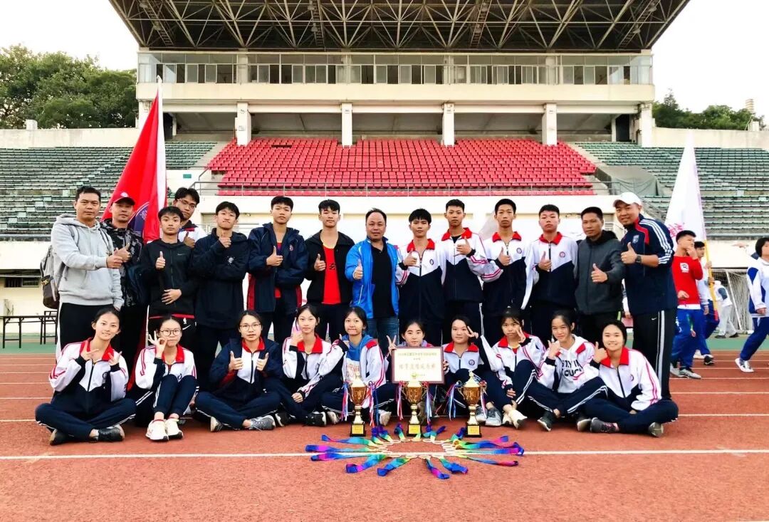 我校运动队训练科学系统,管理严格,成绩优异,在花都区多年来一直保持前列,培养出了一批又一批的足球、定向越野后备人才及高水平运动员,连续多年向华南师范大学、广州大学、深圳大学、广州体育学院等多所高校输送多名学生。荣获2019年花都区中小学校园定向比赛高中男子团体第一名;2019年广州市中小学生校园定向比赛高中团体第二名;2019年广东省定向运动总决赛团体第四名。2020年广州市中小学校园定向团体第二名。2021年广州市中小学定向比赛团体第四名。2019年花都区中小学生足球赛U13组冠军;2019年花都区中小学生足球赛U15亚军;2019花都区中小学生足球比赛高中男子组季军;2020年花都区中小学足球比赛高中组第二名。