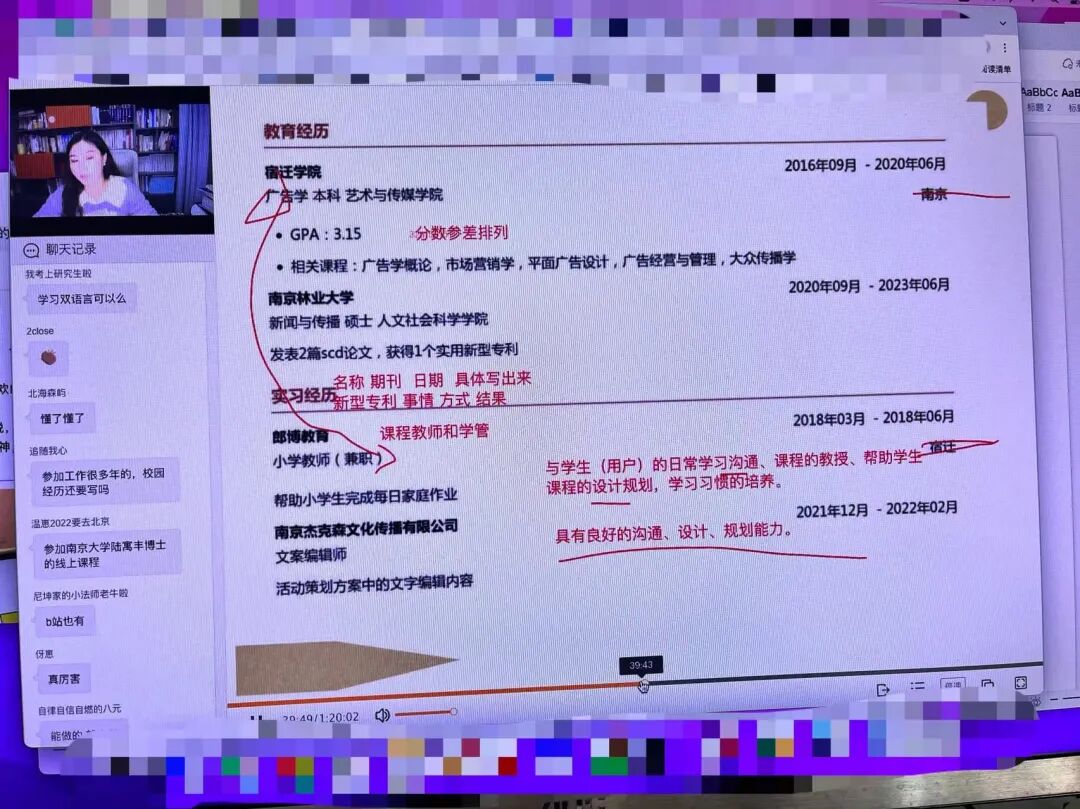 我想说的是,这次复试课收获最大的就是模拟面试了!本来前期还因为擦线过,觉得希望不大,复习不进去在摆烂,结果在超话看到可以腿姐复试课可以模拟面试连麦,赶紧加入,还在超话里找集美们组了复试战队,真的是YYDS!
