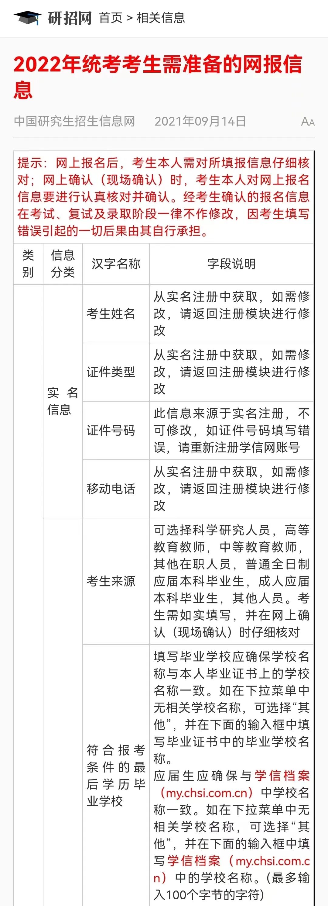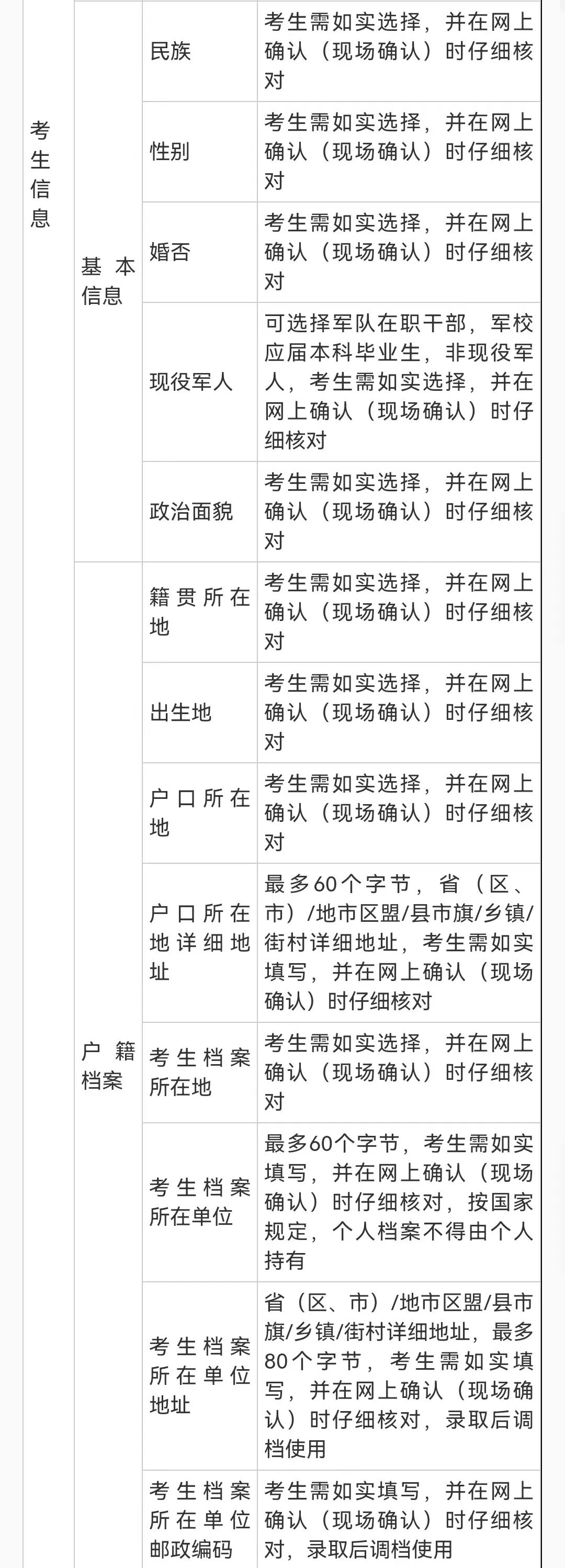 最后,关于考生信息内容的填写,给大家附上详细的说明,在进行信息填写前最好把这些信息都准备好哦!