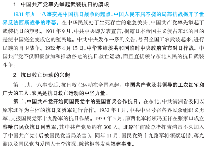 🔺1931年,九一八事变:是抗日战争的起点,揭开了世界反法西斯战争的序幕。