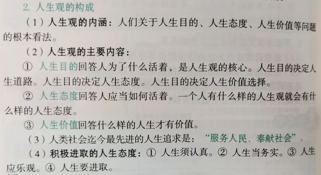 🔺人生观的核心是人生目的purpose,回答的是人为什么活着这个根本问题。
