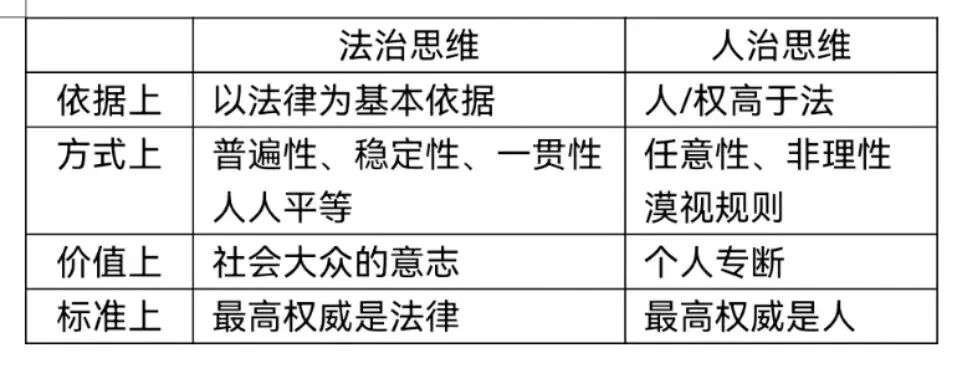 🔺法治思维和人治思维的区别: