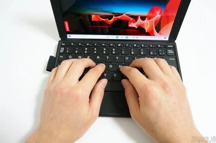 并且为了解决打字舒适度问题,这些折叠屏笔记本电脑普遍还会附赠一个超薄的、基本等同于一半屏幕尺寸大小的外置键盘。用户既可以在屏幕“完全展开”时将其作为无线键盘使用,也可以在屏幕处于“半折叠”状态时,将键盘吸附在下半屏幕上,而此时的使用体验,就会变得更接近传统的笔记本电脑了。