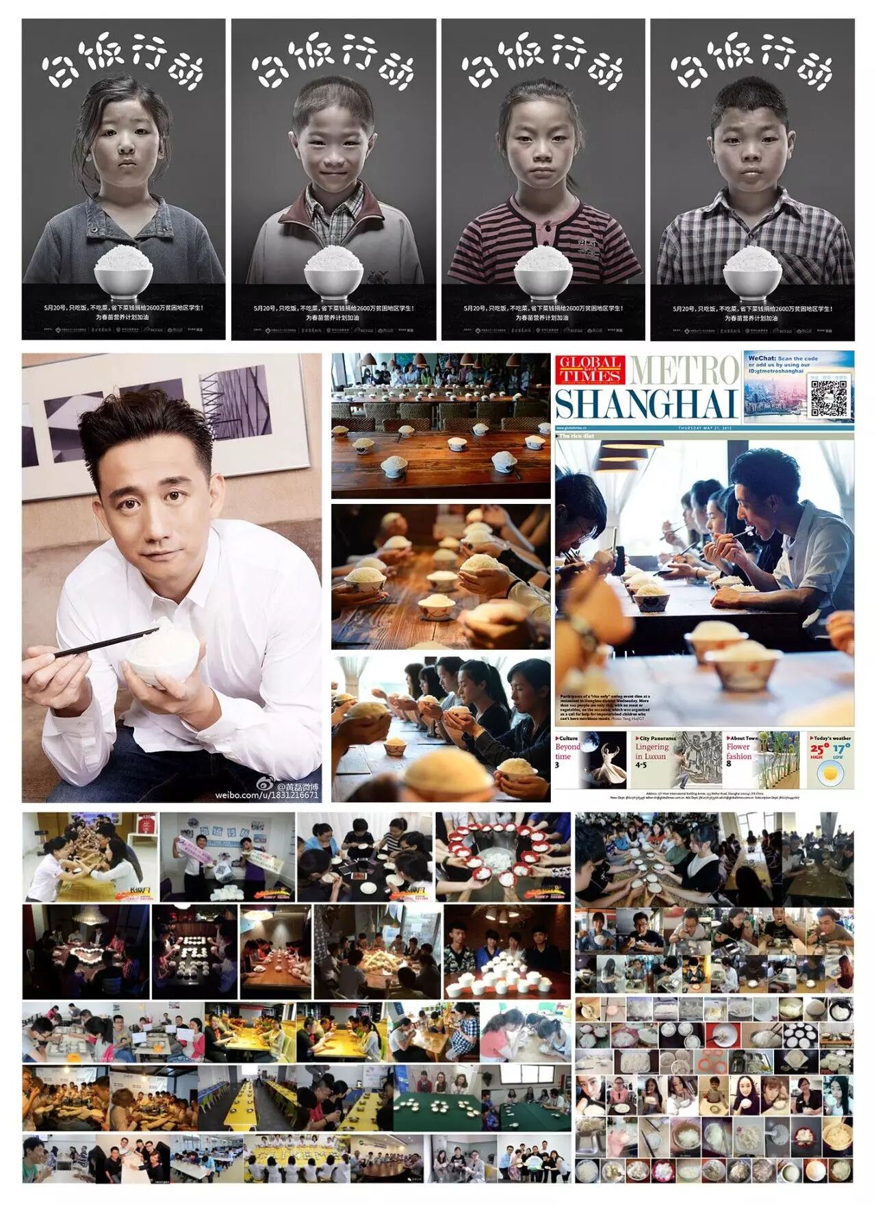 2015年5月20日,为安利公益基金会发起“白饭行动” ,呼吁民众在520当天只吃饭不吃菜,为中国2600万没菜吃天天如同吃白饭的贫困儿童募捐。结果影星黄磊加入白饭行动,上海百名青年集体吃白饭均引发媒体极大关注。520当天近50多个大学、企业和机关自发跟进加入白饭行动,全国近8万人次以不同形式参与白饭行动,获得500多个微信大号自传播,超过200多家传统、互联网媒体报道,覆盖人群近2.1亿。共为贫困儿童募集到近100万善款,将100%用于改善他们的营养状况。