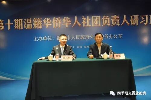 11月6日,由温州市外侨办主办的第十期温籍华侨社团负责人研习班在温州龙湾开班,来自36个国家55个温籍侨团的62位社团负责人不远万里赶回家乡参加研习,交流探讨海外侨团建设经验,进一步凝聚海外侨团力量,助力温州国际时尚智城建设。省外侨办副主任陈安、温州市副市长汪驰、省外侨办国外侨务处处长王红威、市政府副秘书长夏禹桨、市外侨办主任雷文东出席开班仪式。市外侨办副主任周海平主持开班仪式。匈牙利温州商会副会长、四季阳光置业投资公司董事长缪光华先生代表旅匈温籍华人华侨参加了研习。