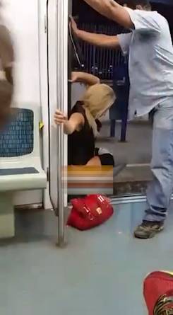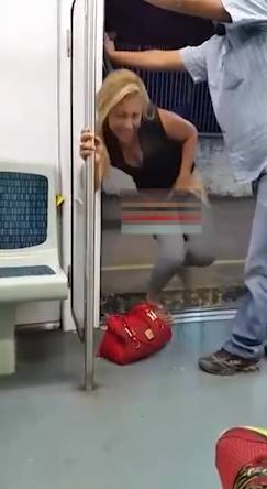 女子乘坐地铁,尿急没憋住,直接在地铁门口解决,绅士的男士还为其阻挡地铁门关闭,女子大大方方小解,毫无羞涩感!