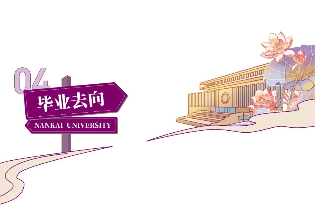 2021年,学院本科毕业生187 人,其中82 人升学至北京大学、清华大学、南开大学、复旦大学、中国人民大学等高等科研院所继续深造,国内读研约占43.85%,47人被美国、英国、日本、新加坡等海外知名高校录取继续深造,出国深造约占25.13%;国内读研和出国深造两项共占比68.98%。43人毕业去向为银行、制药、信息科技和信息传输软件公司、公务员、教育培训机构和自主创业。