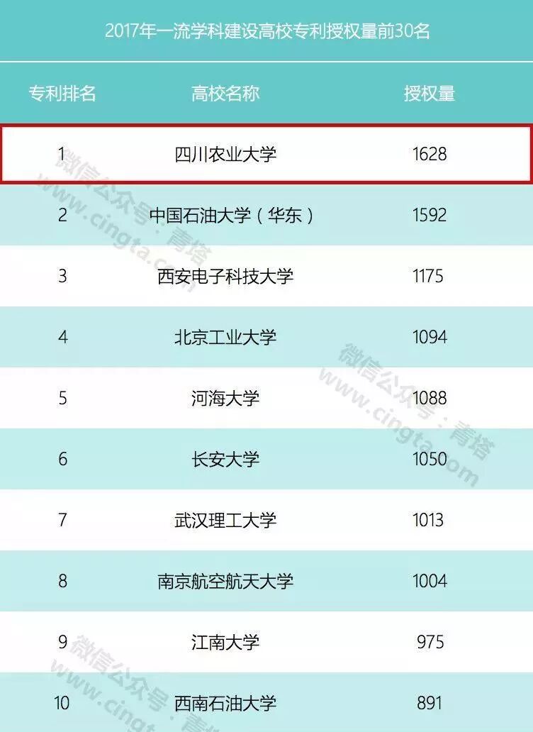 根据江苏省专利信息服务中心(江苏省知识产权局直属单位)统计数据,2017年,全国“双一流”大学共计授权专利67260件(其中一流大学34989件、一流学科建设高校32271件)。而据最新数据,我校拥有专利3057项,授权专利1628项,一流学科建设高校专利授权量位居全国首位,专利拥有量全国第九。
