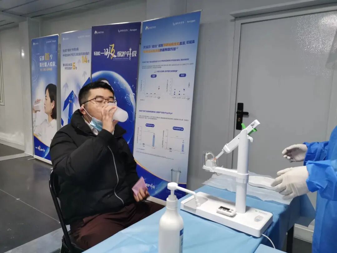 在完成信息核对、流调、预检和登记后,林先生在医护人员的引导下也完成了“吸入式”新冠疫苗的接种。林先生说:“感觉这种新型疫苗科技感好强,看着医生操作也很简单,从制药到接种完成不到1分钟,这种便捷是原来无法想象的。现在冬天到了,这种方式不用脱衣服、挽袖子,确实很方便。”
