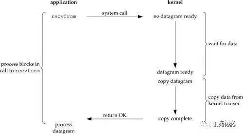 简单地说:在阻塞 IO 模型里,从硬件到系统内核、从系统内核到程序空间,都是阻塞的。