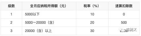 我们国家采用的是超额累进税率,指的是把应征税的金额按照大小分成若干等级,每个等级按照不同税率征收。举个例子某人某月应纳税所得额为 6000 元,用下表所列税率,其应纳税额可以分步计算: