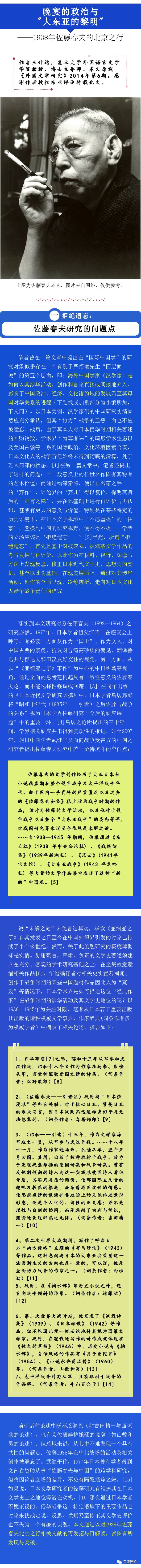 [22] 竹内好『竹内好全集(第十五巻)・日記(上)』、筑摩書房、1981年、第214頁。[23] 佐藤春夫『北京雑報』、『文芸春秋』(16巻10号、1938年時局増刊9・現地報告、1938年6月10日発行)、第93頁。