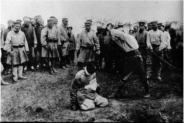 此前的“砍头”在这里被改写成了“枪毙”。这并非鲁迅的疏忽,随后的文字提供了佐证:“此后回到中国来,我看见那些闲看枪毙犯人的人们,他们也何尝不醉酒似的喝彩。”但“砍头”变成“枪毙”,势必导致整个行刑场面的空间结构——也即“幻灯片”的画面空间结构——的变化:枪毙现场不同于砍头现场,围观者不能抵近行刑者和受刑者,而须站在后方稍远地方,以免子弹误伤。正因如此,1914年当民国政府颁布《惩治盗匪法》,将死刑由砍头改为枪决时,北京的刑场随即由人口稠密的菜市口迁至几里外天桥以南先农坛二道门外[1],那里是一块空旷之地。这给照相机镜头带来一个难题,不能像拍摄砍头场面一样,将处在中心的被枪毙者和执行枪决者与呈弧状远远站在后方的围观者们同时收进一个画面且同时保证所有人的脸部表情的可辨性。此外,在枪毙现场,摄影师也不可能站立在被枪毙者的正前方,即子弹打来的方向,进行拍摄,只能从侧面或后方。鲁迅显然对摄影颇为敏感,既然把砍头改为枪毙,就得相应调整整个场景的角度、景深和人物排列,于是不再有《呐喊·自序》中的“站在左右”一说,不再提“麻木的神情”。在《藤野先生》中,不再是“幻灯片”上中国人“麻木的神情”震惊了他(因为角度或距离问题,不能看见或看清他们的脸部表情),而是中国人“只能做毫无意义的示众的材料和看客”让他感到悲哀。