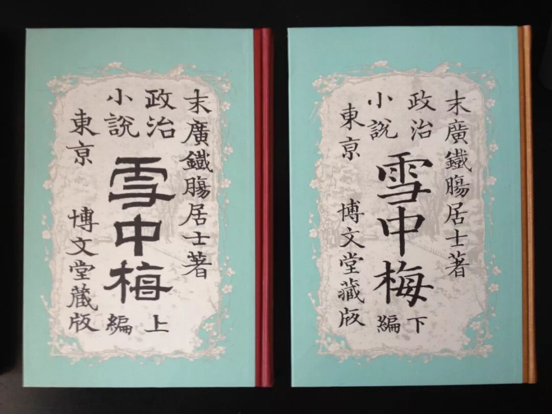 “政治小说”这一说法源自英国,原指19世纪英国政治家所创作的小说。作为日本明治文学史的一环,它最先是以翻译小说的形式出现的, 1878年风靡一时的《欧洲奇事花柳春话》便是译自曾任英国国会议员的布韦尔·李顿(Bulwer—Lytton,1803—1873)的作品,再后来的《政党余谈春莺啭》、《三英双美政界之情波》等则是译自曾两度出任过英国首相的本杰明·迪斯雷利(Benjamin Disraeli,1840—1881)的作品,也有反映法国大革命的《西洋血潮小暴风》(1883)等。这些译作成为当时最畅销的作品,广为阅读,于是,日本的部分政治家及新闻界人士受此影响也开始创作政治小说。如户田钦堂的《民权演义情海波澜》(1880) 、矢野文雄的《经国美谈》(1883)和柴四郎的《佳人之奇遇》(1885)等均是这一时期的代表作。一般认为政治小说“初期以自由民权思想启蒙为主,后期则嬗变为提倡对外扩张的国权小说”。 从这一意义上来说,明治十九年(1886)刊行的《政治小说雪中梅》(末广铁肠著,博文堂刊行)当属于前期作品,其主旨仍在于政治思想的启蒙,特别是伴随着以开设国会为目标的自由民权运动,著者打出了政党政治论的旗帜,这在当时的日本引起了强烈的反响。初版本自发行以来,畅销数量达三万册,甚至出现了“剽窃本”“假冒本”等。明治二十三年五月又由大阪的嵩山堂出版了《订正增补雪中梅》,且一版再版,经久不衰。