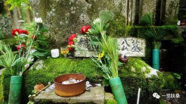 在明智光秀的墓碑旁,还有替丰臣秀吉效忠的家臣石田三成的墓碑。有拜祭者留下文字:大阪城无二的忠臣三成公,在苛酷的刑罚中给予成佛的供养,合掌。