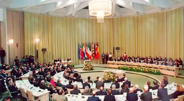 1991年12月9日,在荷兰举行的欧共体第46届首脑会议签署《马斯特里赫特条约》。1993年11月1日,《马斯特里赫特条约》正式生效,人口逾3.4亿的欧共体正式更名为欧洲联盟。