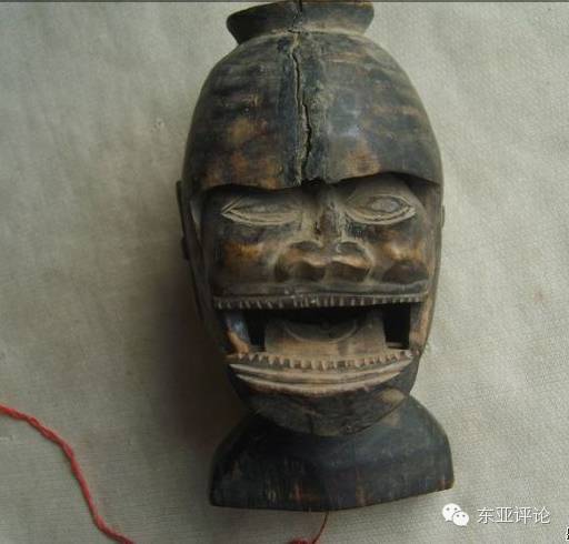 中国古老的“蚩尤戏”亦是战争的产物。上古时代,部落间战事频仍,黄帝蚩尤大战是其中规模最大的战争之一。《述异记》记载:“蚩尤氏耳鬓如剑戟,头有角,与轩辕斗,以角抵人,人不能向。”“以角抵人”的描写表明蚩尤采用了徒手战术,然而在大规模战争中采用徒手战术是危险且荒唐可笑的,毕竟肉体的力量无法抵御武器的威力,所以“以角抵人”应是战争巫术行为,具有取悦战神、威吓敌方的威力。所谓“耳鬓如剑戟”、“头有角”则是蚩尤在主持这场战争巫术仪式时的化装形态。《史记·乐书》记载:“其民三三两两,头戴兽角而相抵,名唤‘蚩尤戏’。”这进一步证明了其化装扮演的实质,这与“傩”的扮演性质具有共通之处,均是人类原初信仰的产物。