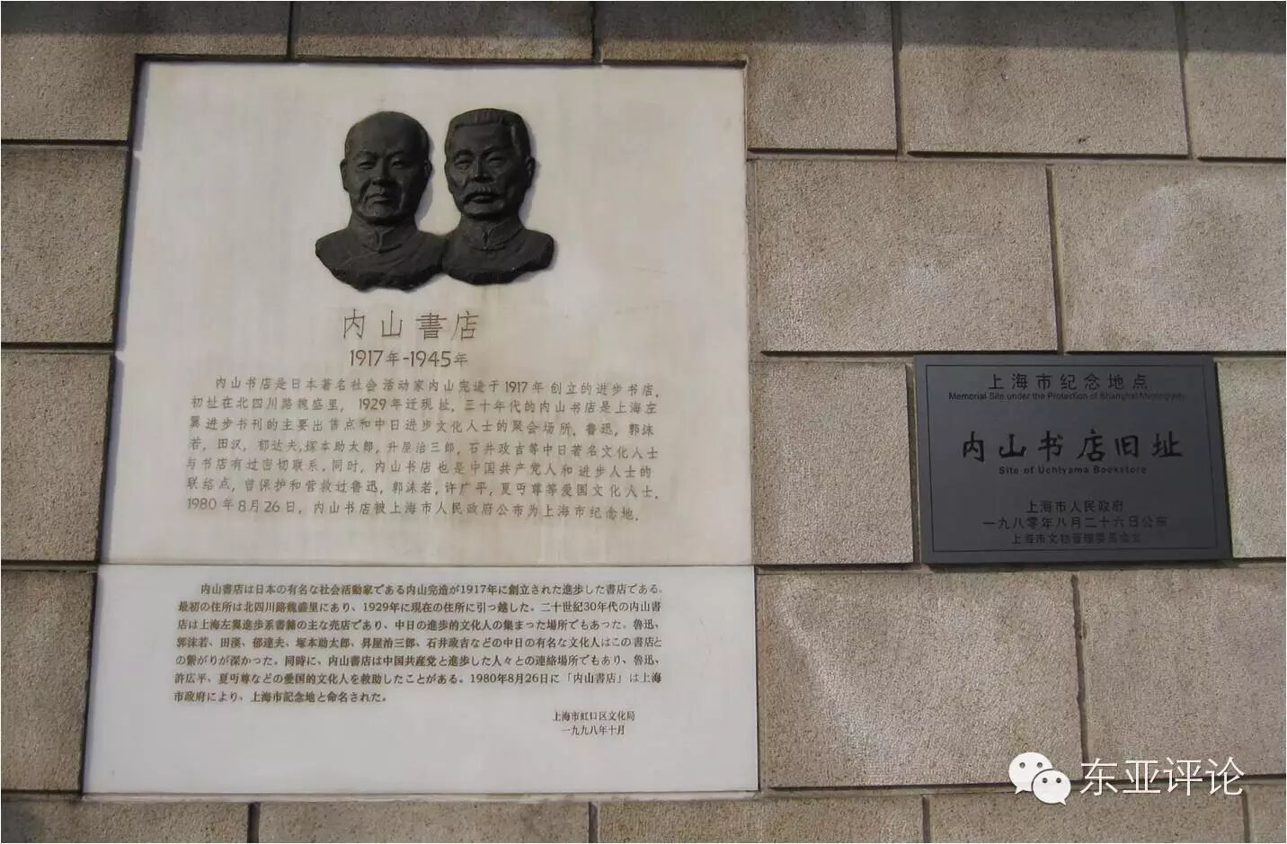 鲁迅是现代中国的文化巨人,内山完造是一个只读过小学的日本商人,两人的身份差距不可谓不大。尤其,他们的交往是在中日两国彼此敌对、甚至兵戎相见的历史时期。如此的大环境下,他们能够跨越民族、阶层、身份的距离,彼此信赖、肝胆相照。这是一位文化巨人的精神和一位文化雅商的人格相互交融的合力。鲁迅居住过的最后两处寓所,是以内山完造或书店雇员的名义租下的,距离书店都只有步行两三分钟的距离。只要没有生病或外出,鲁迅每天下午都会来书店选书,和老板叙话。很多人都知道,只要去内山书店就有机会见到鲁迅。内山书店为鲁迅代收信件,提供谈话场所,代售了鲁迅被国民党政府禁止发行的20多种著作,一二八淞沪战事前后,内山书店多次为鲁迅提供避难场所。内山完造回国期间,鲁迅曾为书店垫付员工开支。鲁迅会见的日本文化界人士,几乎都是通过内山完造介绍的,大多数面谈,鲁迅就坐在书店里那把供他专坐的藤椅上。如此信任一个日本人,不免有人说三道四,但鲁迅说内山完造做生意,“但他不卖血”。不卖人血,是见惯了吃人者和卖血者的鲁迅对内山老板的至高评价。
