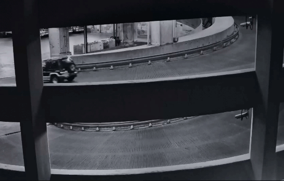女孩在楼上使命地跑,展哥在后面开着车使命地追。